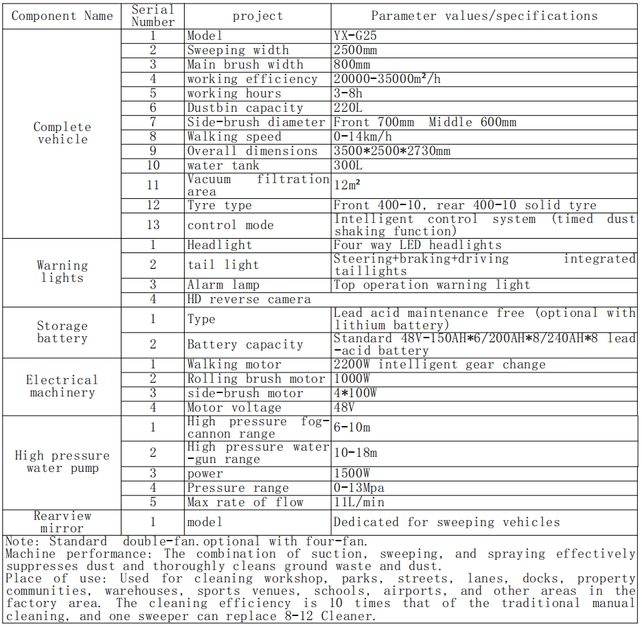 İstifadənin yeri: Təmizləmə seminarı, parklar, küçələr, zolaqlar, doklar, sakinlər, anbarlar, idman yerləri, məktəblər, hava limanları, hava limanları və digər ərazilər üçün istifadə olunur. Təmizləmə səmərəliliyi ənənəvi təlimatdan 10 dəfədir və bir süpürgəçi 8-12 təmizləyici əvəz edə bilər.